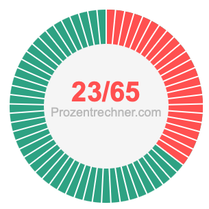 Was ist 23/65 in Prozent? Wie viel ist 23/65 in Prozent? Wie viel Prozent sind 23/65? Hier erklären und zeigen wir Ihnen, wie Sie 23/65 in Prozent berechnen und umrechnen können.