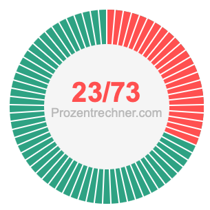 23/73 ist ein Bruch, der 23 von 73 bedeutet, und Prozent bedeutet etwas von 100. Wir können also die folgende Gleichung aufstellen, um 23/73 als Prozentzahl zu erhalten:
