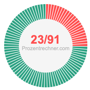 Was ist 23/91 in Prozent? Wie viel ist 23/91 in Prozent? Wie viel Prozent sind 23/91? Hier erklären und zeigen wir Ihnen, wie Sie 23/91 in Prozent berechnen und umrechnen können.