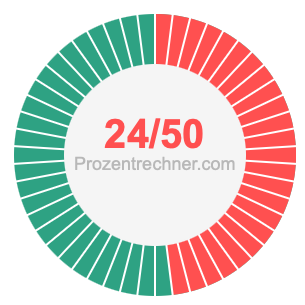 Was ist 24/50 in Prozent? Wie viel ist 24/50 in Prozent? Wie viel Prozent sind 24/50? Hier erklären und zeigen wir Ihnen, wie Sie 24/50 in Prozent berechnen und umrechnen können.