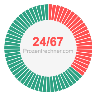 Was ist 24/67 in Prozent? Wie viel ist 24/67 in Prozent? Wie viel Prozent sind 24/67? Hier erklären und zeigen wir Ihnen, wie Sie 24/67 in Prozent berechnen und umrechnen können.