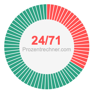Was ist 24/71 in Prozent? Wie viel ist 24/71 in Prozent? Wie viel Prozent sind 24/71? Hier erklären und zeigen wir Ihnen, wie Sie 24/71 in Prozent berechnen und umrechnen können.