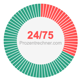 Was ist 24/75 in Prozent? Wie viel ist 24/75 in Prozent? Wie viel Prozent sind 24/75? Hier erklären und zeigen wir Ihnen, wie Sie 24/75 in Prozent berechnen und umrechnen können.