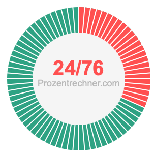 Außerdem werden wir den Bruch 24/76 in einem Kreisdiagramm und 24/76 als Prozent in einem Kreisdiagramm veranschaulichen.