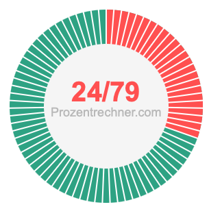 Was ist 24/79 in Prozent? Wie viel ist 24/79 in Prozent? Wie viel Prozent sind 24/79? Hier erklären und zeigen wir Ihnen, wie Sie 24/79 in Prozent berechnen und umrechnen können.
