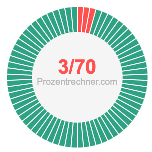 Was ist 3/70 in Prozent? Wie viel ist 3/70 in Prozent? Wie viel Prozent sind 3/70? Hier erklären und zeigen wir Ihnen, wie Sie 3/70 in Prozent berechnen und umrechnen können.