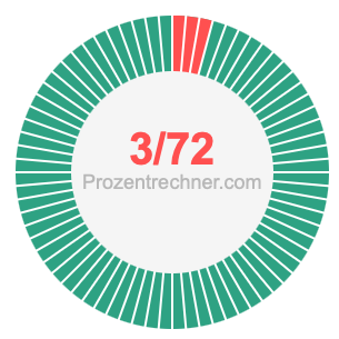 Was ist 3/72 in Prozent? Wie viel ist 3/72 in Prozent? Wie viel Prozent sind 3/72? Hier erklären und zeigen wir Ihnen, wie Sie 3/72 in Prozent berechnen und umrechnen können.
