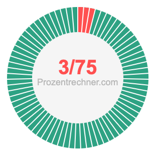 Was ist 3/75 in Prozent? Wie viel ist 3/75 in Prozent? Wie viel Prozent sind 3/75? Hier erklären und zeigen wir Ihnen, wie Sie 3/75 in Prozent berechnen und umrechnen können.
