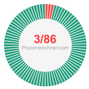 Was ist 3/86 in Prozent? Wie viel ist 3/86 in Prozent? Wie viel Prozent sind 3/86? Hier erklären und zeigen wir Ihnen, wie Sie 3/86 in Prozent berechnen und umrechnen können.