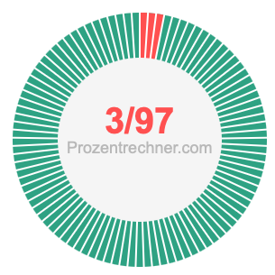 Was ist 3/97 in Prozent? Wie viel ist 3/97 in Prozent? Wie viel Prozent sind 3/97? Hier erklären und zeigen wir Ihnen, wie Sie 3/97 in Prozent berechnen und umrechnen können.