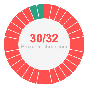 Was ist 30/32 in Prozent? Wie viel ist 30/32 in Prozent? Wie viel Prozent sind 30/32? Hier erklären und zeigen wir Ihnen, wie Sie 30/32 in Prozent berechnen und umrechnen können.