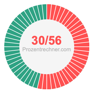 Was ist 30/56 in Prozent? Wie viel ist 30/56 in Prozent? Wie viel Prozent sind 30/56? Hier erklären und zeigen wir Ihnen, wie Sie 30/56 in Prozent berechnen und umrechnen können.