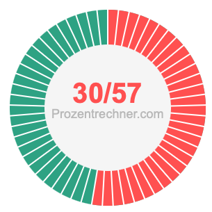 Was ist 30/57 in Prozent? Wie viel ist 30/57 in Prozent? Wie viel Prozent sind 30/57? Hier erklären und zeigen wir Ihnen, wie Sie 30/57 in Prozent berechnen und umrechnen können.
