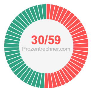 Außerdem werden wir den Bruch 30/59 in einem Kreisdiagramm und 30/59 als Prozent in einem Kreisdiagramm veranschaulichen.