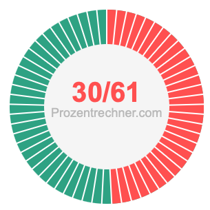 Was ist 30/61 in Prozent? Wie viel ist 30/61 in Prozent? Wie viel Prozent sind 30/61? Hier erklären und zeigen wir Ihnen, wie Sie 30/61 in Prozent berechnen und umrechnen können.