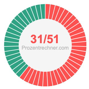 Was ist 31/51 in Prozent? Wie viel ist 31/51 in Prozent? Wie viel Prozent sind 31/51? Hier erklären und zeigen wir Ihnen, wie Sie 31/51 in Prozent berechnen und umrechnen können.