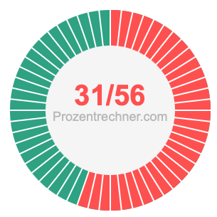 Was ist 31/56 in Prozent? Wie viel ist 31/56 in Prozent? Wie viel Prozent sind 31/56? Hier erklären und zeigen wir Ihnen, wie Sie 31/56 in Prozent berechnen und umrechnen können.