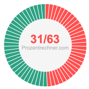Was ist 31/63 in Prozent? Wie viel ist 31/63 in Prozent? Wie viel Prozent sind 31/63? Hier erklären und zeigen wir Ihnen, wie Sie 31/63 in Prozent berechnen und umrechnen können.
