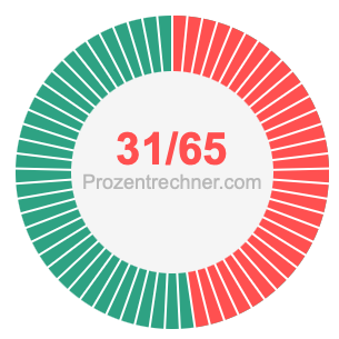 Was ist 31/65 in Prozent? Wie viel ist 31/65 in Prozent? Wie viel Prozent sind 31/65? Hier erklären und zeigen wir Ihnen, wie Sie 31/65 in Prozent berechnen und umrechnen können.