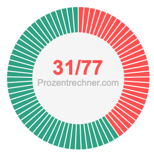 Was ist 31/77 in Prozent? Wie viel ist 31/77 in Prozent? Wie viel Prozent sind 31/77? Hier erklären und zeigen wir Ihnen, wie Sie 31/77 in Prozent berechnen und umrechnen können.
