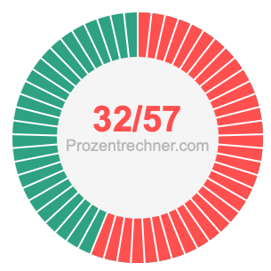 Was ist 32/57 in Prozent? Wie viel ist 32/57 in Prozent? Wie viel Prozent sind 32/57? Hier erklären und zeigen wir Ihnen, wie Sie 32/57 in Prozent berechnen und umrechnen können.
