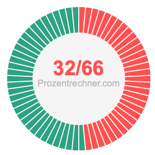 Was ist 32/66 in Prozent? Wie viel ist 32/66 in Prozent? Wie viel Prozent sind 32/66? Hier erklären und zeigen wir Ihnen, wie Sie 32/66 in Prozent berechnen und umrechnen können.
