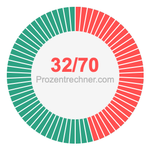 Was ist 32/70 in Prozent? Wie viel ist 32/70 in Prozent? Wie viel Prozent sind 32/70? Hier erklären und zeigen wir Ihnen, wie Sie 32/70 in Prozent berechnen und umrechnen können.