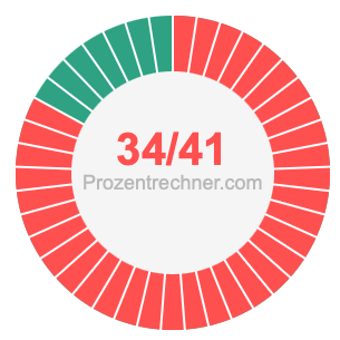 Was ist 34/41 in Prozent? Wie viel ist 34/41 in Prozent? Wie viel Prozent sind 34/41? Hier erklären und zeigen wir Ihnen, wie Sie 34/41 in Prozent berechnen und umrechnen können.