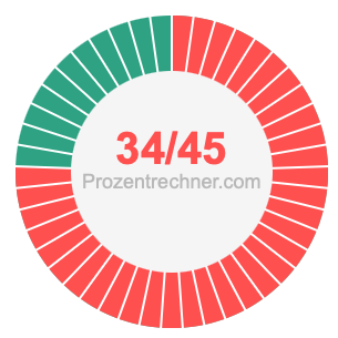 Was ist 34/45 in Prozent? Wie viel ist 34/45 in Prozent? Wie viel Prozent sind 34/45? Hier erklären und zeigen wir Ihnen, wie Sie 34/45 in Prozent berechnen und umrechnen können.