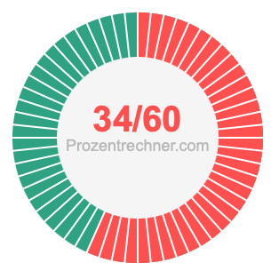 Was ist 34/60 in Prozent? Wie viel ist 34/60 in Prozent? Wie viel Prozent sind 34/60? Hier erklären und zeigen wir Ihnen, wie Sie 34/60 in Prozent berechnen und umrechnen können.