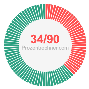 Was ist 34/90 in Prozent? Wie viel ist 34/90 in Prozent? Wie viel Prozent sind 34/90? Hier erklären und zeigen wir Ihnen, wie Sie 34/90 in Prozent berechnen und umrechnen können.
