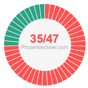 Was ist 35/47 in Prozent? Wie viel ist 35/47 in Prozent? Wie viel Prozent sind 35/47? Hier erklären und zeigen wir Ihnen, wie Sie 35/47 in Prozent berechnen und umrechnen können.