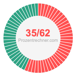 Was ist 35/62 in Prozent? Wie viel ist 35/62 in Prozent? Wie viel Prozent sind 35/62? Hier erklären und zeigen wir Ihnen, wie Sie 35/62 in Prozent berechnen und umrechnen können.
