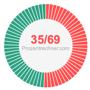 Was ist 35/69 in Prozent? Wie viel ist 35/69 in Prozent? Wie viel Prozent sind 35/69? Hier erklären und zeigen wir Ihnen, wie Sie 35/69 in Prozent berechnen und umrechnen können.