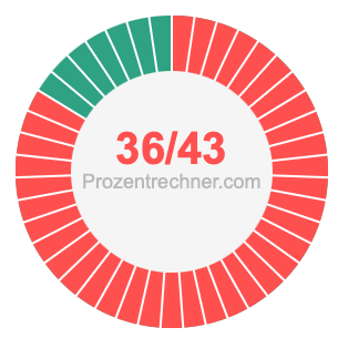 Was ist 36/43 in Prozent? Wie viel ist 36/43 in Prozent? Wie viel Prozent sind 36/43? Hier erklären und zeigen wir Ihnen, wie Sie 36/43 in Prozent berechnen und umrechnen können.