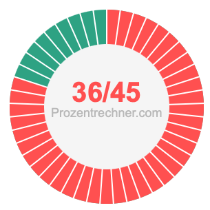 Was ist 36/45 in Prozent? Wie viel ist 36/45 in Prozent? Wie viel Prozent sind 36/45? Hier erklären und zeigen wir Ihnen, wie Sie 36/45 in Prozent berechnen und umrechnen können.
