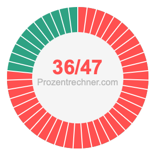 Was ist 36/47 in Prozent? Wie viel ist 36/47 in Prozent? Wie viel Prozent sind 36/47? Hier erklären und zeigen wir Ihnen, wie Sie 36/47 in Prozent berechnen und umrechnen können.