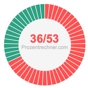 Was ist 36/53 in Prozent? Wie viel ist 36/53 in Prozent? Wie viel Prozent sind 36/53? Hier erklären und zeigen wir Ihnen, wie Sie 36/53 in Prozent berechnen und umrechnen können.
