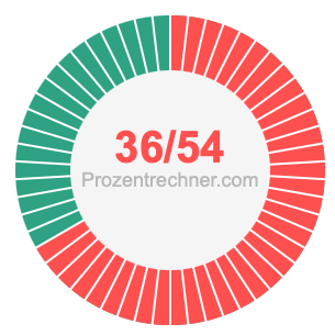 36/54 ist ein Bruch, der 36 von 54 bedeutet, und Prozent bedeutet etwas von 100. Wir können also die folgende Gleichung aufstellen, um 36/54 als Prozentzahl zu erhalten: