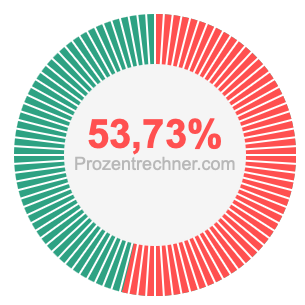 Die Abbildungen unten zeigen Ihnen, wie 36/67 und 53,73 % ein Kreisdiagramm zwar unterschiedlich aufteilen, aber die gleiche Fläche abdecken, weil sie gleich groß sind.