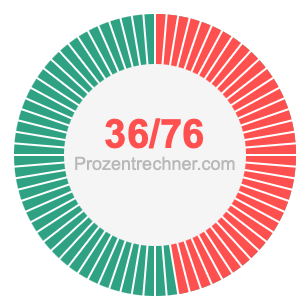 Was ist 36/76 in Prozent? Wie viel ist 36/76 in Prozent? Wie viel Prozent sind 36/76? Hier erklären und zeigen wir Ihnen, wie Sie 36/76 in Prozent berechnen und umrechnen können.