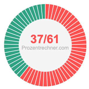 Was ist 37/61 in Prozent? Wie viel ist 37/61 in Prozent? Wie viel Prozent sind 37/61? Hier erklären und zeigen wir Ihnen, wie Sie 37/61 in Prozent berechnen und umrechnen können.