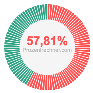 Die Abbildungen unten zeigen Ihnen, wie 37/64 und 57,81 % ein Kreisdiagramm zwar unterschiedlich aufteilen, aber die gleiche Fläche abdecken, weil sie gleich groß sind.