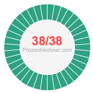 Was ist 38/38 in Prozent? Wie viel ist 38/38 in Prozent? Wie viel Prozent sind 38/38? Hier erklären und zeigen wir Ihnen, wie Sie 38/38 in Prozent berechnen und umrechnen können.