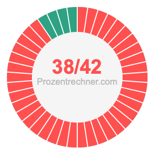 Was ist 38/42 in Prozent? Wie viel ist 38/42 in Prozent? Wie viel Prozent sind 38/42? Hier erklären und zeigen wir Ihnen, wie Sie 38/42 in Prozent berechnen und umrechnen können.