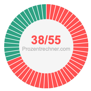 Was ist 38/55 in Prozent? Wie viel ist 38/55 in Prozent? Wie viel Prozent sind 38/55? Hier erklären und zeigen wir Ihnen, wie Sie 38/55 in Prozent berechnen und umrechnen können.