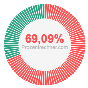 Die Abbildungen unten zeigen Ihnen, wie 38/55 und 69,09 % ein Kreisdiagramm zwar unterschiedlich aufteilen, aber die gleiche Fläche abdecken, weil sie gleich groß sind.