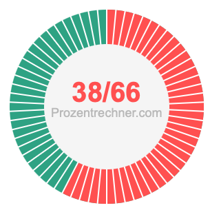 Was ist 38/66 in Prozent? Wie viel ist 38/66 in Prozent? Wie viel Prozent sind 38/66? Hier erklären und zeigen wir Ihnen, wie Sie 38/66 in Prozent berechnen und umrechnen können.