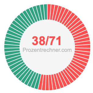 Was ist 38/71 in Prozent? Wie viel ist 38/71 in Prozent? Wie viel Prozent sind 38/71? Hier erklären und zeigen wir Ihnen, wie Sie 38/71 in Prozent berechnen und umrechnen können.