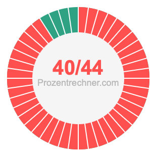 Was ist 40/44 in Prozent? Wie viel ist 40/44 in Prozent? Wie viel Prozent sind 40/44? Hier erklären und zeigen wir Ihnen, wie Sie 40/44 in Prozent berechnen und umrechnen können.
